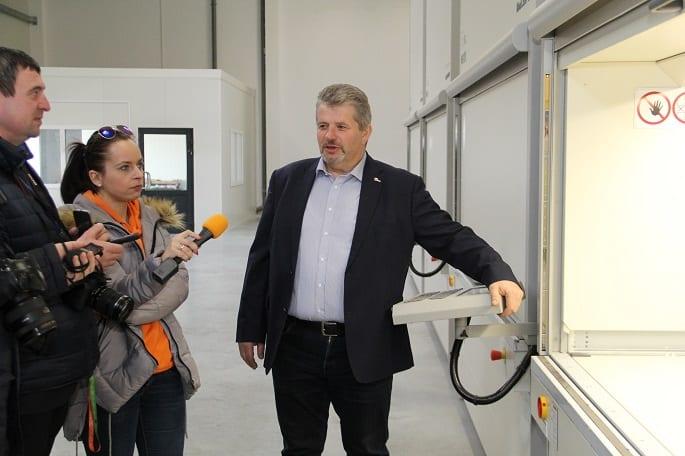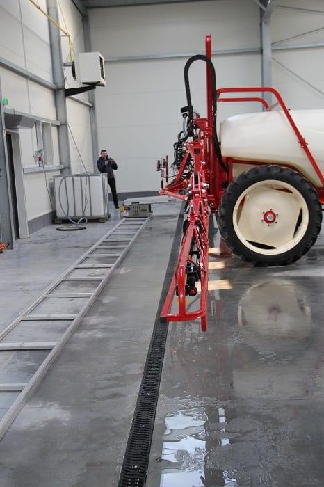 Dużo uwagi podczas zwiedzania nowego obiektu w Woźniakowie poświęcono stanowisku do kontroli sprawności opryskiwaczy. To tutaj można ocenić czy wypuszczany na rynek sprzęt spełni oczekiwania odbiorców i norm dotyczących techniki ochrony upraw. Stanowisko do kontroli opryskiwaczy zostało wyposażone w nowoczesny stół rowkowy, dzięki czemu można skontrolować rozkład poprzeczny cieczy. Jak informował Marek Janus z firmy Ekotronik (wyłączny importer rozpylaczy rolniczych i sadowniczych Lechler oraz dostawca stacji meteorologicznych Pessl Instruments – IMETOS®), za jednym przejazdem można tu sprawdzić belki opryskiwaczy o szerokości do 24 m.