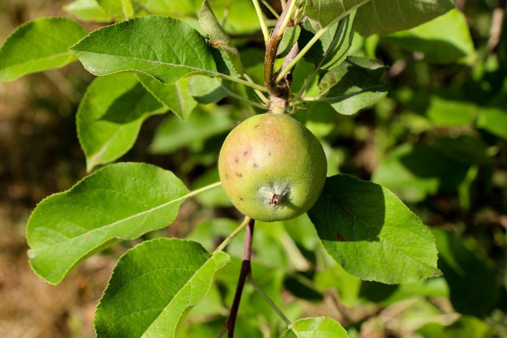 B. Błaszczyńska informowała, za Sylwestrem Masnym z Instytut Ogrodnictwa w Skierniewicach – zarodniki workowe w workach jeszcze są, ale nieaktywne. Nie można jednak zapomnieć o tej chorobie. Konieczne są lustracje, aby nie przeoczyć możliwych infekcji wtórnych zarodnikami konidialnymi wytwarzającymi się na plamach obecnych na owocach (fot. 3), liściach (fot. 4), pędach, ogonkach liściowych, jeśli któryś z zabiegów jednak „przepuścił”.