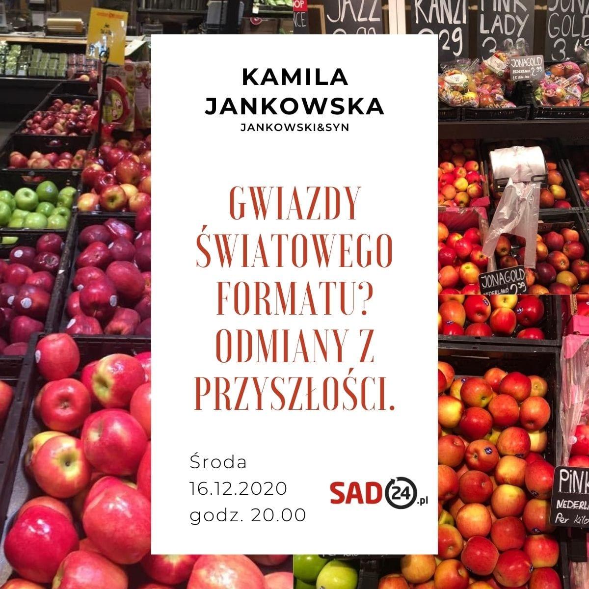 Zapraszamy na kolejne webinarium – tym razem porozmawiamy o przyszłościowych odmianach jabłoni oraz o tym, w jaki sposób zwiększyć zyski ze sprzedaży jabłek. Gościem specjalnym będzie Kamila Jankowska (Szkółka Jankowski&Syn). Webinarium odbędzie się w środę (16.12.2020), o godzinie 20.00.