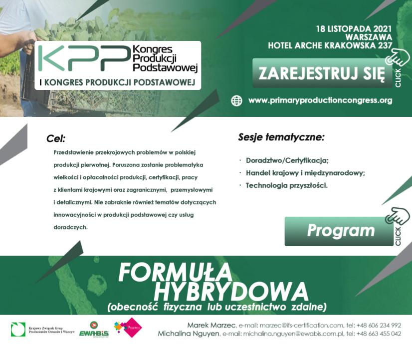 W dniu 18 listopada 2021 w hotelu Arche Krakowska 237 w Warszawie odbędą się równolegle trzy wydarzenia branżowe: VIII edycja Kongresu Bezpieczeństwa Żywności, III edycja Kongresu Logistycznego i I edycja Kongresu Produkcji Podstawowej.