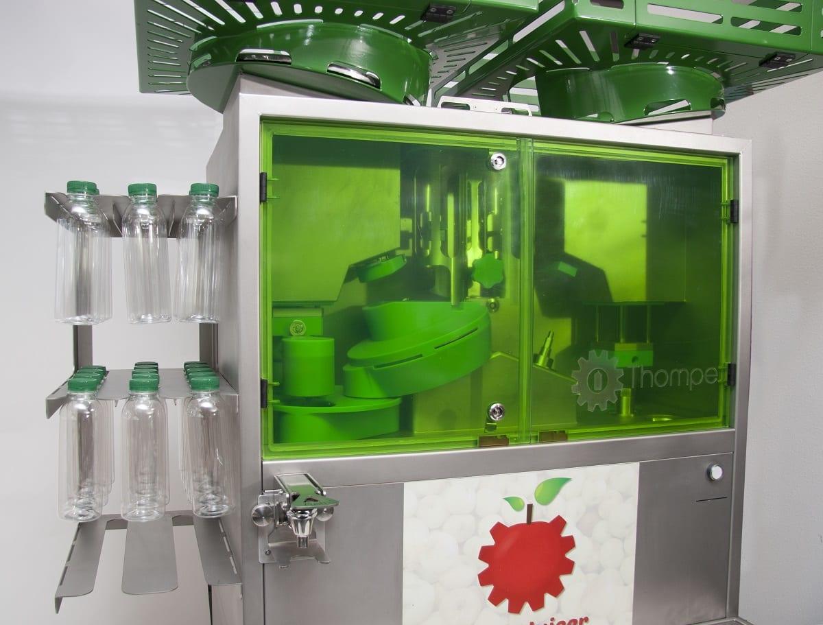 AppleJuicer, bo tak nazywa się maszyna wyprodukowana przez holenderską firmę Thompe, ma około 1,5 m wysokości i wyposażona jest w dwa pojemniki na jabłka, skąd pobierane są do tłoczenia. Jednorazowo do maszyny można załadować 50 kg jabłek. Użytkownik samodzielnie obsługujący ją, może obserwować proces wyciskania soku przez przezroczystą osłonę wyciskarki. Podobnie jak maszyny do wyciskania soku z cytrusów, AppleJuicer wyposażona jest w stojaki, na których zwieszane są butelki z gotowym sokiem (np. przygotowanym wcześniej przez pracownika marketu).