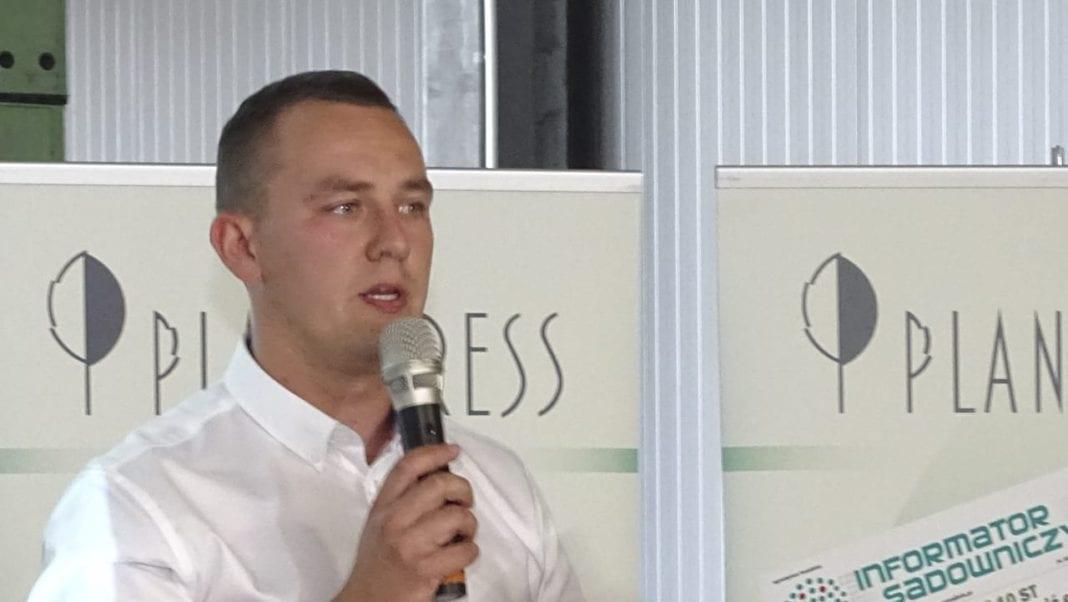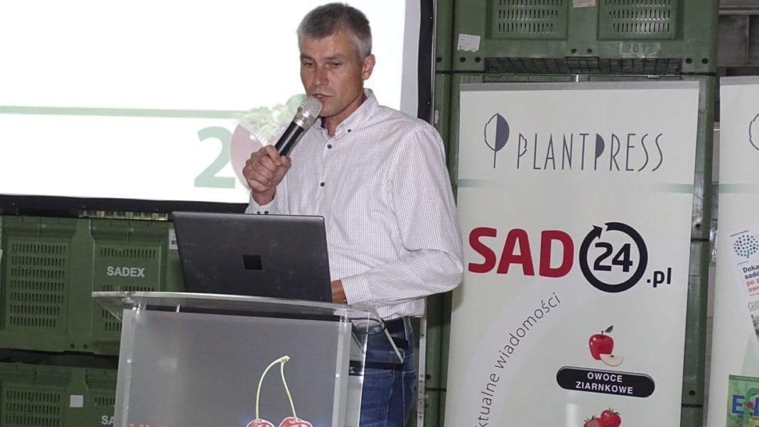 Robert Binkiewicz (Agrosimex) przedstawił zalecenia na drugą połowę lata i jesień, w dużej mierze dotyczące nawożenia i ochrony czereśni. Zwracał uwagę, że jeszcze w tym sezonie mogą pojawić się problemy z przędziorkami i szpecielami. Spośród chorób – zwłaszcza na kanadyjskiego pochodzenia odmianach samopylnych – groźny może się okazać rak bakteryjny. Zachęcał do dostarczania roślinom składników odżywczych poprzez nawożenie dolistne. Latem, gdy drzewa są w pełni ulistnione ta forma dokarmiania jest bardziej efektywna niż wiosną, a dostarczone substancje będą stanowić łatwo dostępne roślinie zapasy potrzebne jeszcze jesienią do wzmocnienia pąków i na przedwiośniu, kiedy pomogą złagodzić stresy powodowane przez niesprzyjającą temperaturę.