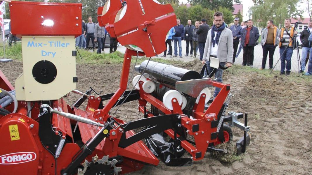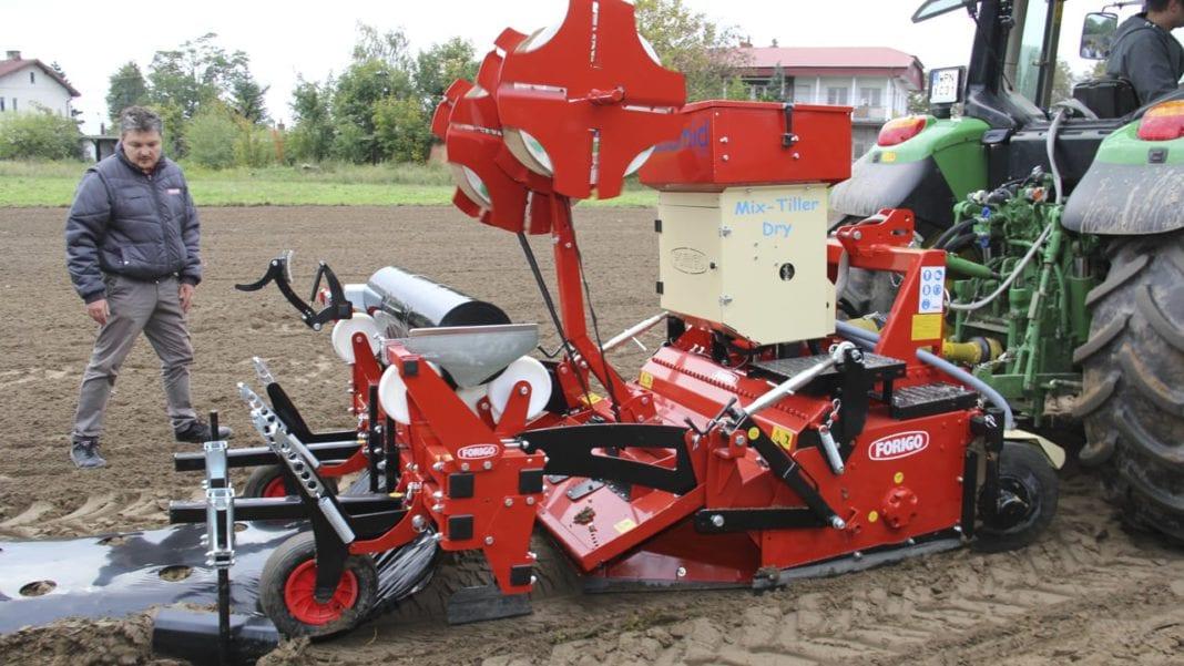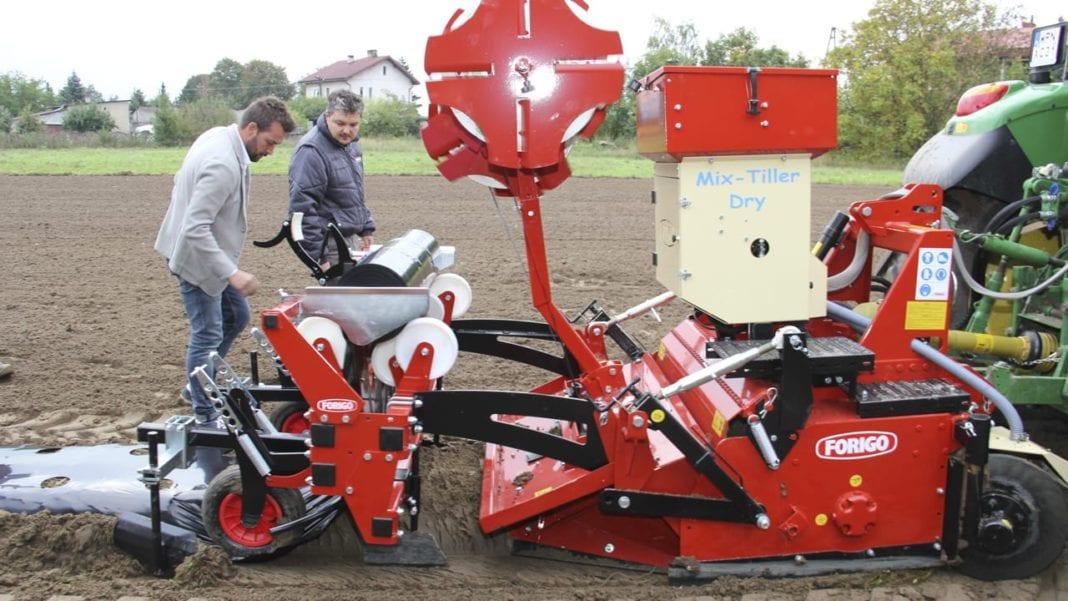 Na dużych powierzchniach aplikację środka można przeprowadzić w sposób w pełni zautomatyzowany. Służy do tego maszyna Mix Tiller Dry włoskiego producenta Forigo zaczepiana do ciągnika i napędzana WOM. Dzięki niej można nie tylko aplikować Basamid 97 GR na całej powierzchni pracy maszyny, lecz także na odkażonej powierzchni podczas jednego przejazdu formować zagon, rozkładać linię nawadniającą i okrywać stanowisko folią, o czym informował Danielle Chilese, przedstawiciel producenta prezentowanej maszyny. Prędkość robocza maszyny to ok. 1,5 km/godzinę. Dodatkową jej zaletą jest funkcja „stone burrier”, czyli – jak wyjaśnił Krzysztof Kinstler z firmy Promodis, dilera maszyn Forigo – funkcja zakopywania kamieni znajdujących się w zasięgu pracy maszyny.