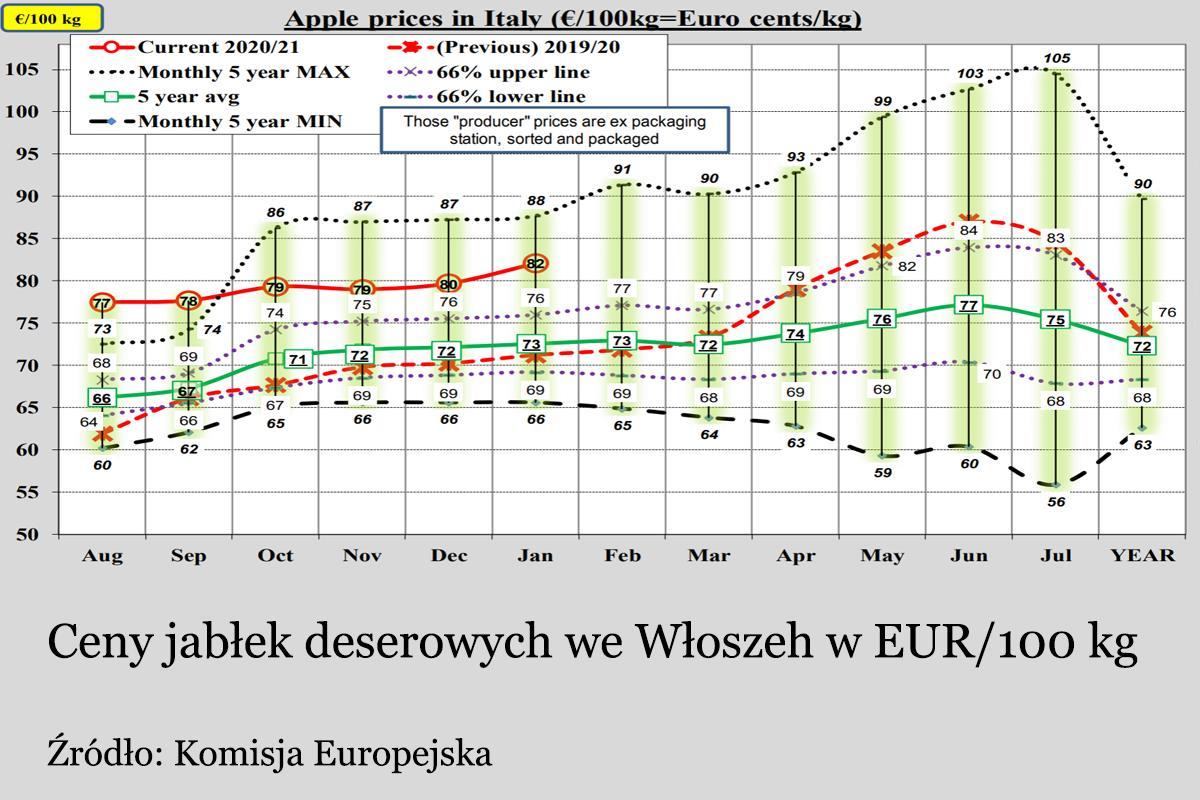 Włoscy sadownicy i handlowcy są zadowoleni z przebiegu sezonu handlowego. Sprzedaż przebiega płynnie, a zapasów szybko ubywa. Średnie ceny są średnio o 10 eurocentów (na kilogramie) wyższe niż w ubiegłym roku.