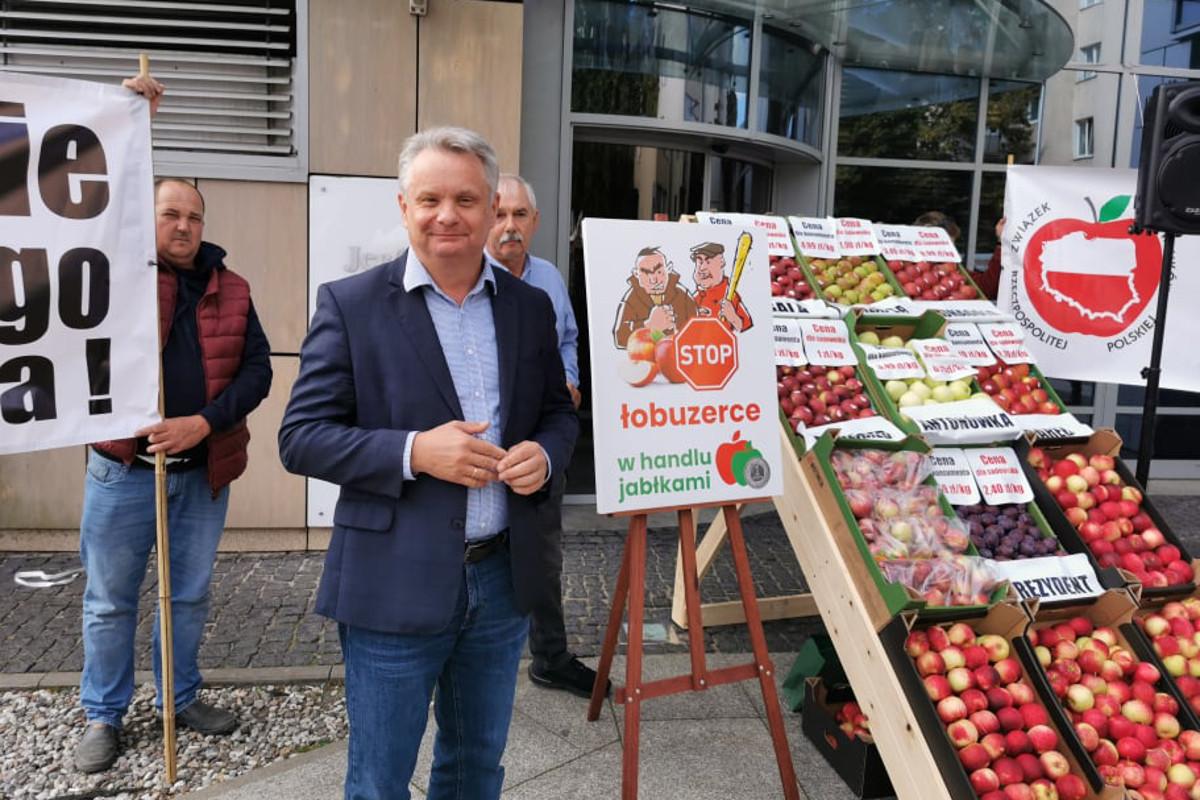 Protest przebiega pod hasłem "Stop łobuzerce w handlu jabłkami". Mobilizacja środowiska wynikła z propozycji narzucanych dostawcom jabłek przez markety. Odbiorcy chcą jednakowej ceny dostaw do początku kolejnego sezonu. Zdaniem Związku Sadowników RP jest to rażący przykład wykorzystywania przewagi kontraktowej.