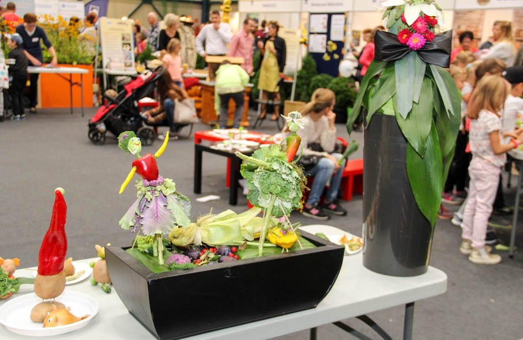 W tej samej lokalizacji uwagę przyciągała wystawa kompozycji z udziałem owoców, warzyw i oczywiście kwiatów. Można było porównać walory różnych gatunków i odmian.