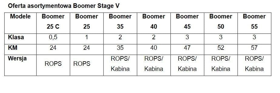 Seria Boomer została poszerzona o dwa nowe modele klasy 3: Boomer 45 o mocy 47KM oraz Boomer 55 o mocy 57KM, pokrywające segment mocy w przedzialedo60KM. Oferta nowych mocy dodatkowo zwiększa wszechstronność ciągników Boomer, mogą bowiem one z większą łatwością sprostać najbardziej wymagającym zadaniom, typowym dla tej gamy maszyn –od koszenia po transport i inne prace, takie jak lekkie prace uprawowe czy zamiatanie i odśnieżanie ulic.