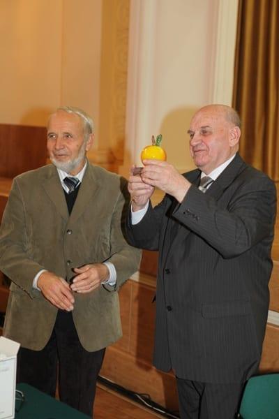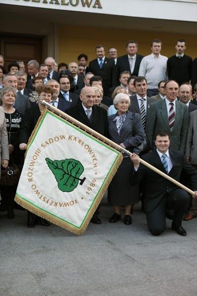 Gratulując Towarzystwu, prof. dr hab. Kazimierz Tomala powiedział m.in., że „mieliśmy szczęście mieć osoby z wizją sadownictwa i które tę wizję umiały realizować. Wiadomo, że wszystko zależy od ludzi. Profesor Makosz miał szczęście do ludzi ponadprzeciętnych, ale bez niego ich by nie było”. Symboliczne kryształowe jabłko – symbol uznania Instytutu Sadownictwa i Kwiaciarstwa w Skierniewicach wręczył prof. Makoszowi profesor Augustyn Mika (fot. 2). Piotr Kaczor, prezes Stowarzyszenia Polskich Szkółkarzy podkreślał, że „20 lat działalności to szmat czasu, bo zwykle polskie organizacje działają krótko i kłótliwie”.