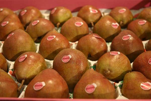 Sady w Belgii są obecnie zdominowane przez nasadzenia grusz, których powierzchnia jest większa od tej przeznaczonej pod sady jabłoniowe. Zwiedzających nie dziwiło więc, że dużo uwagi poświęcono nowym odmianom grusz. Gwiazdą targów była grusza Sweet Sensation (fot. 1), pierwsza czerwona gruszka wprowadzona do komercyjnej produkcji w Europie, jako odmiana klubowa. Sweet Sensation to czerwony mutant ‘Komisówki’ którego właścicielem jest holenderska firma Next Fruit Generation (NFG). Docelowo planowane jest posadzenie około 1200 ha tej odmiany w Europie oraz założenie plantacji w RPA i w Chile, które będą dostarczać owoców poza sezonem na naszej półkuli. W 2008 roku z europejskich sadów zebrano pierwsze owoce, w ubiegłym pierwszy plon handlowy. Za gruszki Sweet Sensation sadownicy otrzymywali w ub. roku do 1,5 €/kg. Większość owoców trafiła do ekskluzywnych sieci handlowych w Belgii, Holandii oraz w Wielkiej Brytanii.