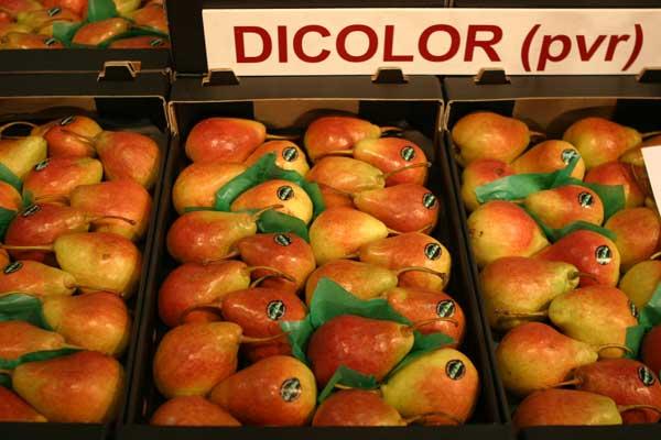 Główną nowością szkółki drzew owocowych René Nicolaï n.v. z Belgii była natomiast znana już polskim sadownikom czeska odmiana ‘Dicolor’ (fot. 3). Polecano ją, jako bardzo plenną w warunkach belgijskich, mało podatną na parcha i tworzącą bardzo atrakcyjne owoce, które wielkością ustępują jednak gruszkom Sweet Sensation. Zdaniem przedstawicieli szkółki, przy właściwym przerzedzaniu zawiązków ‘Dicolor’ tworzy owoce wystarczającej wielkości.