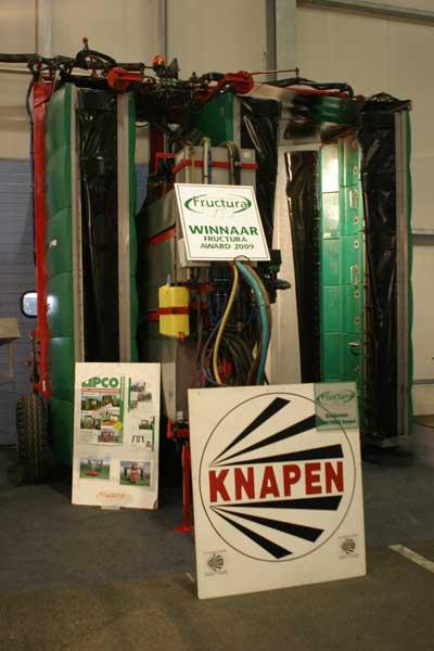 Główna nagroda za innowacje została przyznana dla zaczepianego opryskiwacza tunelowego Lipco z Niemiec (fot. 7). Takie maszyny są już popularne w Holandii, ale jeszcze rzadko spotykane w Belgii. Prezentowany model waży około 2000 kg, ma zbiornik o pojemności 1600 l i można nim opryskiwać drzewa o wysokości do 3,5 m. według przedstawicieli firmy, która oferowała maszynę oszczędności cieczy roboczej sięgają 30%. Opryskiwacz wymaga ciągnika o mocy 70 KM i kosztuje około 60 tys. euro.