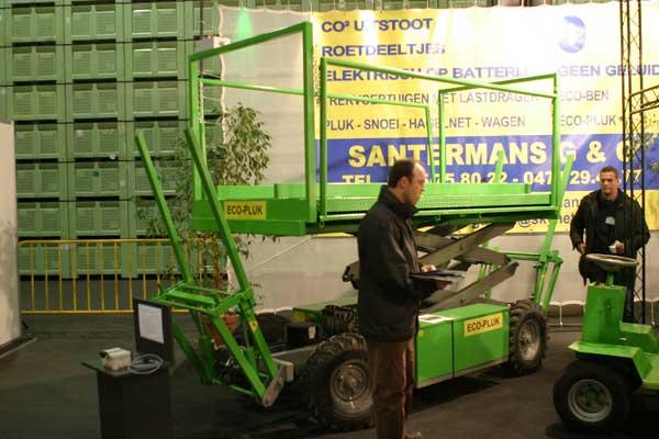 Platformy sadownicze są w Belgii i Holandii używane powszechnie. Na targach Fructura prezentowano większość znanych marek tych urządzeń (np. N. Blosi, Knecht, Hercules, Orsi, Marchesi). Nowością była pierwsza samobieżna platforma napędzana nie silnikiem spalinowym, ale elektrycznym (6 KW /48 V – fot. 10). Zdaniem jej producenta, belgijskiej firmy Hoogwerkers Santermans, podstawową zaletą urządzenia jest brak drgań, które mogą uszkadzać owoce w skrzyniopaletach oraz stwarzać niekorzystne warunki pracy ludzi. Taki silnik nie zanieczyszcza środowiska, na co często zwraca się już uwagę na Zachodzie. Urządzenie może pracować do 6 godzin przy w pełni naładowanych akumulatorach. Podstawowa wersja kosztuje około 26 tys. euro.