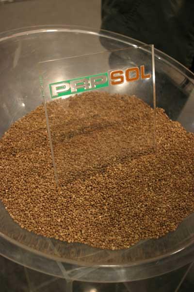Poprawieniu warunków dla utrzymania i stymulacji życia biologicznego gleby ma pomagać nawóz PRP SOL produkowany przez francuską firmę o tej samej nazwie. Nawóz ma sprzyjać rozwojowi dżdżownic, pożytecznych grzybów, nicieni oraz innych organizmów. Jego skład jest chroniony patentem. Według przedstawicieli producenta, zawiera różne związki mineralne spakowane w gliniane granulki (fot. 12) . Ma przyczyniać się do napowietrzenia gleby, ułatwiać magazynowanie w niej wody, wpływać na wzrost zawartości próchnicy i przyswajalnych składników pokarmowych. Po użyciu nawozu gleba ma być luźniejsza, bardziej gruzełkowata i stawiać mniejsze opory elementom roboczym maszyn. PRP SOL jest dopuszczony w rolnictwie ekologicznym. W sadach zalecano dawki 150-400 kg/ha w zależności od zawartości substancji organicznych. W Belgii kilogram nawozu kosztuje około 0,65 euro.
