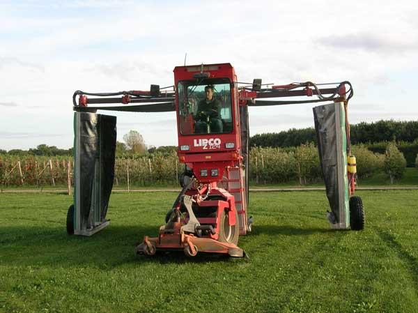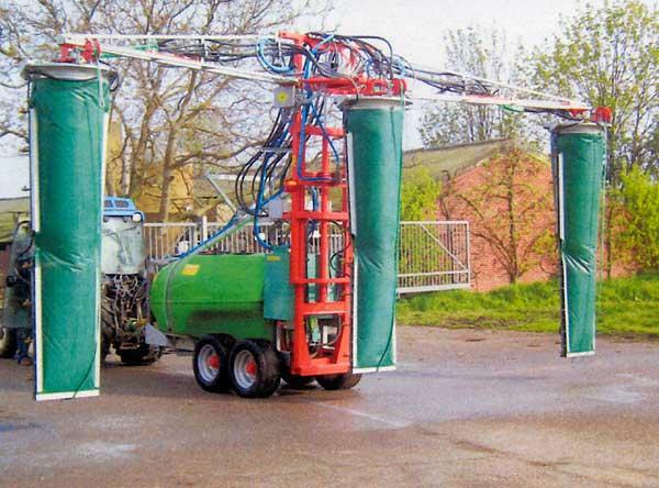 W tym celu skonstruowano wielorzędowe maszyny, w których strumień powierza, wytwarzany przy użyciu wentylatorów promieniowych, był tłoczony przewodami rurowymi ponad rzędami roślin do specjalnych kolektorów umiejscowionych w dwóch sąsiednich międzyrzędziach. Takie maszyny są używane do ochrony winorośli. Stosuje się tam również coraz powszechniej wielorzędowe opryskiwacze montowane na podwoziach kombajnów do winorośli. Były one zdolne do opryskiwania czterech rzędów jednocześnie, stając się największymi, najwydajniejszymi, ale i jednocześnie najdroższymi opryskiwaczami sadowniczymi. W Holandii próby skonstruowania takich maszyn podjęły się firmy Munckhof (fot. 2) oraz KWH. Opracowane tam trzyrzędowe opryskiwacze można uznać za sensowny kompromis pod względem spełnianych funkcji oraz ceny zakupu. W Europie pracuje zaledwie około 30 takich maszyn. Można mieć nadzieję, że znajdą one również zastosowanie w największych polskich sadach. Obawy obserwatorów wiążą się jednak z wydajnością powietrza, która musi wystarczyć na trzy, zamiast jak dotąd na jeden rząd. Oznacza to znacznie większe zapotrzebowanie mocy i obawy, czy wystarczy jej naszym krajowym ciągnikom. Kolejne wątpliwości budzi rachunek ekonomiczny ze względu na znacznie wyższą cenę zakupu w odniesieniu do przyrostu wydajności. Trzeba bowiem pamiętać, że opryskiwanie trzech rzędów zamiast jednego, wcale nie oznacza trzykrotnego wzrostu wydajności. Musimy również liczyć się ze spadkiem wydajności w związku z utrudnionym pokonywaniem uwroci oraz - co najważniejsze - z powodu ograniczonej pojemności zbiornika.