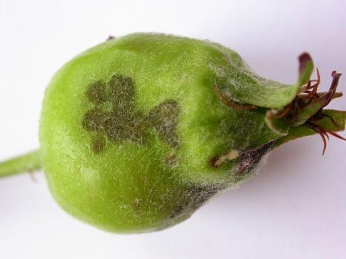 Ze względu na wysoką wilgotność powietrza poważny problem w sezonie 2010 może stanowić także szara pleśń. Grzyb Botrytis cinerea, sprawca choroby, jest typowym polifagiem porażającym wielu gatunków roślin uprawnych i dziko rosnących. Na skutek zakażenia kwiatów jabłoni przez zarodniki B. cinerea rozwija się gnilna plama na zawiązkach owoców, u podstawy działek kielicha. Jej rozwój zostaje dość szybko zahamowany, a porażona tkanka zapada się i zasycha. Wokół kielicha pozostają wówczas ciemnobrązowe, suche, nekrotyczne plamy o średnicy 0,5-3 cm. Wystąpieniu tej formy szarej pleśni jabłek (sucha zgnilizna przykielichowa) szczególnie sprzyja deszczowa pogoda w czasie kwitnienia oraz opadania płatków. Grzyb zasiedla słupki i pręciki, a także pozostaje w formie ukrytej w kielichu rozwijającego się owocu. Choroba może wystąpić na różnych odmianach jabłoni.