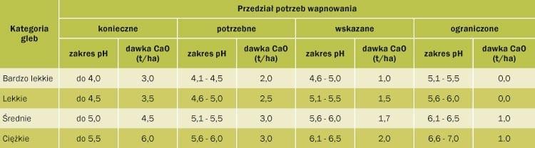 Jak zatem należy postępować, aby do minimum zmniejszyć straty wynikające z niszczącego działania wody na glebę? Oprócz zabiegów uprawowych poprawiających dostęp powietrza do gleby (bronowanie, talerzowanie, kultywatorowanie itp.) ogromną rolę odgrywa odpowiednie nawożenie mineralne. Spośród składników pokarmowych odgrywających ważną rolę w rekultywacji gleb w sadzie po powodzi najistotniejszy jest wapń. Posiada on zdolność do łączenia (zlepiania) cząstek gleby w większe agregaty odbudowując w ten sposób przestrzenną strukturę gleby. Dzięki temu relacje pomiędzy wodą i powietrzem w glebie powracają do normy, a korzenie drzew mają odpowiednie warunki do wzrostu i pobierania składników odżywczych z gleby. Stąd też poleca się wapnowanie gleb, które ucierpiały na skutek powodzi. Dawki nawozów wapniowych należy dobrać według aktualnych wyników analiz chemicznych gleby (tabela 1).