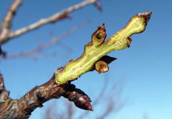 Uszkodzenia mrozowe po ostatniej zimie w sadach są bardzo zróżnicowane, ponieważ dotyczą podstawy pąka kwiatowego (co objawia się jej zbrązowieniem – fot. 1, 2), wnętrza pąków kwiatowych (fot. 3), krótkopędów na starszym drewnie oraz pędów jednorocznych (fot. 4). Dopóki drzewa owocowe nie zakwitną, niemożliwa jest jednak jednoznaczna ocena skali uszkodzeń, ani procentowego określenia ich rozmiaru i nasilenia.