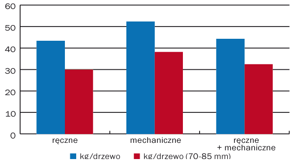 Z czasem rośnie też znaczenie przerzedzania zawiązków, bo zanika przemienność owocowania, a rośnie liczba pąków kwiatowych (wykres). Ponieważ przerzedzanie chemiczne jest trudne do wykonania przy słabym wzroście drzew, lepiej jest wykonywać ten zabieg mechanicznie.