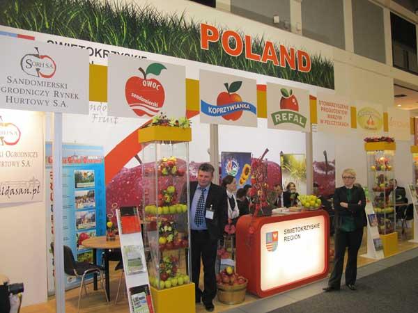 Oprócz znanych, dużych grup producenckich z Mazowsza (fot. 4) czy województwa lubelskiego (fot. 5), w tym roku silnie reprezentowane było także województwo Świętokrzyskie, z którego do Berlina przyjechało 7 wystawców (Refal, Sandomierski Owoc, Nadwiślanka, Pełczyska, Koprzywianka, Amplus i Sandomierski Ogrodniczy Rynek Hurtowy – fot. 6), wspieranych przez przedstawicieli samorządu województwa (Piotr Żołądek, członek Zarządu Województwa oraz Sławomir Neugebauer, zastępca dyrektora Departamentu Rozwoju Obszarów Wiejskich i Środowiska Urzędu Marszałkowskiego).