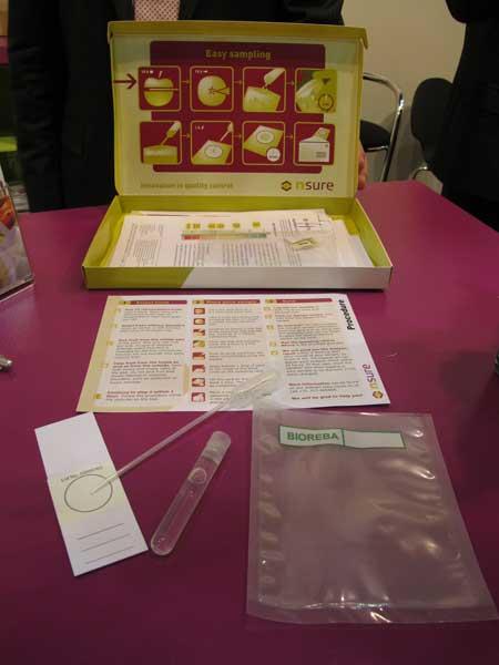Sadowników może zainteresować propozycja innego kandydata do nagrody, holenderskiej firmy NSure B.V., która proponowała producentom gruszek, metodę szacowania okresu przechowywania tych owoców na podstawie testu, wykonywanego prostym zestawem (fot. 10). Podczas zbioru owoców w sadzie pobiera się reprezentatywną próbkę gruszek, a następnie za pomocą prostego zestawu nanosi niewielką ilość wyciśniętego soku na specjalną kartę, przesyłaną później do laboratorium firmy. Po 2 dniach producent otrzymuje raport z analizą tego, jak dana partia gruszek będzie się zachowywać w przechowalni. Raport zawiera, m.in. przewidywania dotyczące możliwości wystąpienia wewnętrznych zbrązowień miąższu oraz dane dotyczące okresu, w którym owoce zaczną tracić jędrność. Od kilku lat taka metoda szacowania przewidywanej długości przechowywania dostępna jest w Holandii dla jabłek.