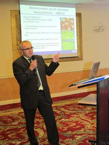 Specjalnym gościem konferencji był prof. dr hab. Kazimierz Tomala z SGGW w Warszawie, który zaprezentował metody i technologie wykorzystywane w produkcji sadowniczej, a mogące pomóc w dopasowaniu jakości owoców do oczekiwań konsumentów. Spotkanie zakończyło się wystąpieniem Adama Paradowskiego, przedstawiciela firmy Agrofresh. Zaprezentował on dwuletnie wyniki stosowania w Polsce technologii SmartFresh, pozwalającego owocom dłużej zachować świeżość. Warto dodać, że Tesco już od dwóch lat użycie tej technologii przez wszystkich dostawców jest obligatoryjne w stosunku do owoców kierowanych do handlu, mniej więcej od czerwca do czasu pojawienia się pierwszych odmian wczesnych jabłek o dobrej jakości, czyli zazwyczaj owoców odmiany ‘Paulared’.