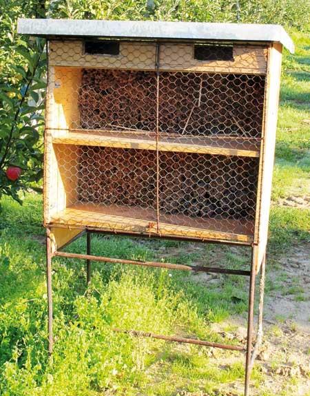 Dzięki dobrej znajomości biologii murarki oraz jej wymagań ekologicznych łatwo można ją hodować. W sztucznym chowie najczęściej do przygotowania gniazd dla murarki ogrodowej wykorzystuje się źdźbła trzciny pospolitej (fot. 4), które powinny mieć długość 18-20 cm i średnicę otworów 8 mm. W źdźbłach o mniejszej średnicy (5-6 mm) rozwija się większa liczba samców, natomiast w tych o średnicy otworów 6-7 mm utrzymuje się równowaga płci, a przy równej 7-8 mm – przeważają samice. Właśnie samice biorą aktywny udział w krzyżowym zapylaniu roślin. Ponieważ murarki tolerują ścisłe ułożenie rurek gniazdowych można tworzyć z nich pakiety. Rurki gniazdowe najlepiej umieścić w drewnianych zadaszonych skrzynkach, aby zabezpieczyć je przed deszczem i zawilgoceniem (fot. 5). W miejscu uprawy, którą pszczoły mają oblatywać, np. w sadzie rurki gniazdowe można przywiązać do drzew, ale umieszcza się je w taki sposób aby nie były narażone na podmuchy wiatru lub wykorzystuje się do tego celu specjalne stojaki. Wysokość, na jakiej znajdują się rurki gniazdowe, nie ma większego znaczenia dla lotów pszczół. Istotne jest natomiast aby ich otwory wylotowe skierowane były na stronę południową, względnie południowo-wschodnią lub południowo-zachodnią.