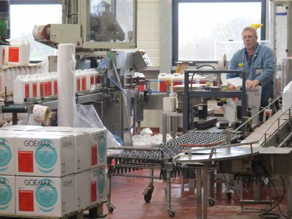 Rocznie fabryka firmy Goëmar zużywała dotąd około 500 ton świeżych alg, z których powstawało 3-4 mln litrów gotowych produktów. Nowo wybudowany zakład ma docelowo przetwarzać do 1000 ton alg rocznie. Dostarczane do fabryki glony są kontrolowane w celu sprawdzenia jakości, a następnie płukane wodą pod ciśnieniem, aby usunąć morskie zanieczyszczenia. Proces produkcyjny zaczyna się od rozdrobnienia glonów, co ważne bez użycia jakichkolwiek dodatków chemicznych ani wysokiej temperatury, które mogłyby zniszczyć cenne naturalne składniki. Stopniowe rozdrabnianie prowadzi do uzyskania zielonkawej emulsji, tzw. homogenatu (fot. 3), w którym pojedyncze komórki glonów zostały zniszczone w celu wydobycia ich cennej zawartości. Homogenat poddaje się dalszej filtracji mechanicznej, aby oddzielić z niego frakcje nieprzydatne, np. celulozę. Produktem filtracji jest tzw. filtrat – półprzezroczysty, żołtawozielonkawy płyn (fot. 3), który jest podstawą do produkcji nawozów. Ta ostatnia polega na wzbogaceniu filtratu w różne związki i substancje aktywne (selekcjonowane pod względem potrzeb specyficznych grup roślin uprawnych), a następnie odpowiednim rozcieńczeniu i konfekcjonowaniu w opakowania (fot. 4), które trafiają do rolników, producentów owoców, warzyw i roślin ozdobnych w 45 krajach świata.