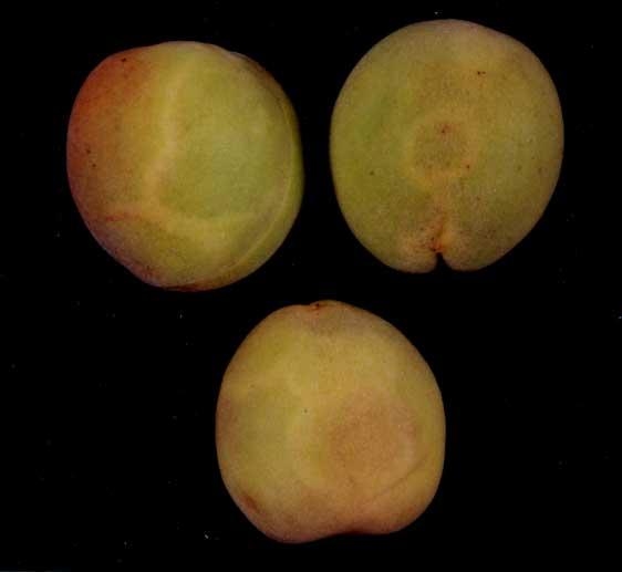 Objawy wywoływane przez PPV na owocach moreli
