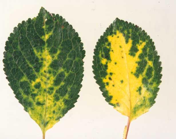 Powszechnie występującymi wirusami drzew pestkowych są: wirus żółtaczki wiśni, synonim: wirus karłowatości śliwy (Prune dwarf virus, PDV) i wirus nekrotycznej plamistości pierścieniowej wiśni (Prunus necrotic ring spot virus, PNRSV). PDV infekuje częściej czereśnie, zaś PNRSV – wiśnie. Obydwa patogeny porażają również śliwę, brzoskwinię, morelę, ałyczę, antypkę i dzikie gatunki drzew pestkowych. Wirusy te przenoszone są z materiałem rozmnożeniowym (podkładki generatywne i wegetatywne, oczka, zrazy, nasiona). Obydwa wirusy powodują zmniejszenie liczby przyjętych oczek w szkółce nawet o połowę. Okulanty wyprodukowane z użyciem chorych oczek lub podkładek najczęściej nie wykazują wyraźnych objawów, zatem możliwość ich wyeliminowania, a tym samym uniknięcia wprowadzenia do sadu chorych drzewek, jest ograniczona. W czasie kwitnienia drzew, wirusy wraz z pyłkiem zaczynają się stopniowo rozprzestrzeniać w sadzie. Objawy wywoływane przez PNRSV i PDV najłatwiej jest zaobserwować wiosną.