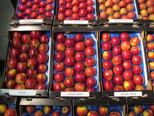 Mariusz Lewandowski z ISK w Skierniewicach przedstawił jak wyglądają prace nad stworzeniem nowej odmiany oraz scharakteryzował te wybrane, które powstały w Polsce. Ze skierniewickiej placówki wyszła m.in. wpisana już do rejestru Odmian i Księgi Ochrony Wyłącznego Prawa, odmiana jabłoni ‘Ligolina’. To siostrzana siewka ‘Ligola’ powinna być dostępna w postaci kwalifikowanego materiału szkółkarskiego od 2012 roku. Ze Skierniewic pochodzą też trzy odmiany odporne na parcha i mało podatne na mączniaka jabłoni: ‘Free Redstar’, ‘Melfree’ oraz ‘Gold Millenium’. Dw ie pierwsze są odmianami wczesnozimowymi, jabłka trzeciej dojrzewają w drugiej połowie sierpnia. Do wspomnianego rejestru odmian zgłoszone zostały także 3 krótkopędowe odmiany ‘Ligola’ odkryte przez Marka Przybytniaka: ‘Ligol Redspur’, Ligol Spur’ oraz ‘Ligol Red’ (fot. 2). Kwalifikowany materiał szkółkarski tych odmian do zakładania sadów będzie jednak dostępny dopiero 2016 roku. M. Lewandowski zwracał także uwagę na nową grusze ‘Dolores’ oraz dwie ciekawe nowe śliwy: ‘Polinkę’ i ‘Emper’. Ta ostatnia ma być bardzo plenna i przydatna do zbioru już w drugiej połowie lipca.