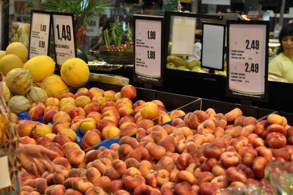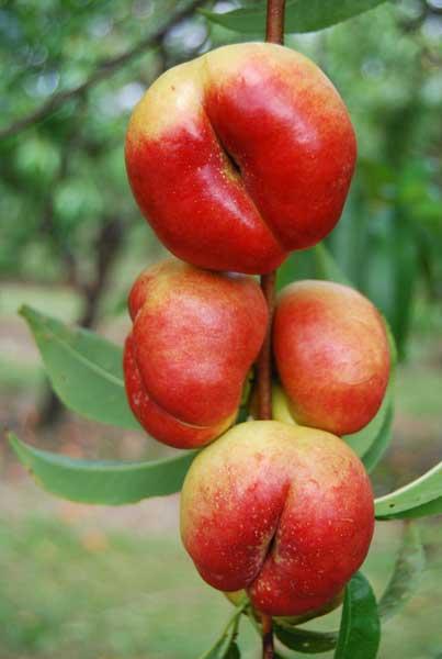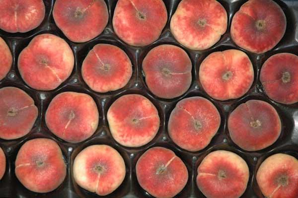 Uprawa brzoskwini o płaskich owocach rozwija się dynamicznie w Hiszpanii. Spośród około 1 mln ton owoców brzoskwini produkowanych w tym kraju już 8% stanowią płaskie. Są one eksportowane do wielu krajów Europy, w tym także do Polski. W uprawie dominuje ‘Sweet Cap’, ale także testowane są inne odmiany (UFO-1,2,3,4, ‘Mesembrine’, ‘Regalcake 28’, ‘Ornella’, ‘Regalcake 31’, ‘Oriola’, ‘Regalcake 33’), które w hiszpańskich warunkach dzięki różnej porze dojrzewania (zostały wymienione od najwcześniejszej do najpóźniejszej) gwarantują podaż świeżych owoców przez trzy miesiące – od ostatniej dekady maja do końca sierpnia. Rozwój nasadzeń brzoskwini o płaskich owocach stymulują wysokie ceny, jakie uzyskują sadownicy za owoce. Są one o około 50% wyższe niż za brzoskwinie tradycyjne (fot. 11).