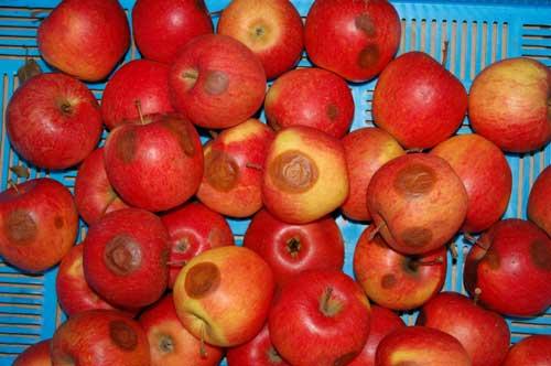 Rhizopus sp.). O podatności jabłek na te choroby decyduje podatność skórki na mechaniczne uszkodzenia. Nie jest to równoznaczne z grubością skórki, bo np. jabłka odmiany ‘McIntosh’ mają twardą i dość grubą skórkę, a jednak bardzo łatwo ulegającą przebiciu.