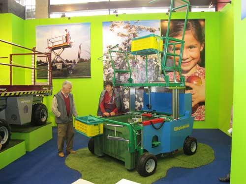 Maszyny i urządzenia dominowały podczas ubiegłorocznej edycji targów. Dla przykładu, ponad 15 producentów prezentowało tam różne typy platform sadowniczych – od najprostszych modeli (fot. 1) po najnowsze z napędem elektrycznym. We Włoszech platformy są powszechnie używane podczas zbiorów, cięcia drzew, przerzedzania zawiązków czy rozpinania siatek przeciwgradowych.