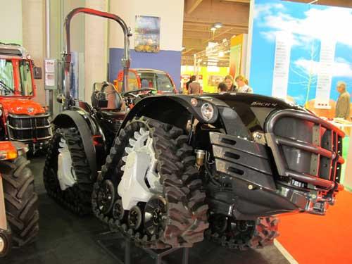 Jak zwykle we Włoszech imponująca była oferta ciągników sadowniczych i rolniczych. Niektóre z nich wyposażone były w silniki o mocy 80 KM, a nawet w gąsienice zamiast kół (fot. 4). Były tez modele z obrotową kabiną, które można wykorzystywać jako ciągnik lub jako wózek sadowniczy.