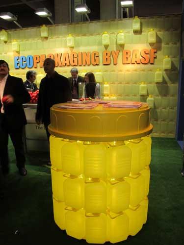 Krokiem w kierunku zwiększenia bezpieczeństwa środków ochrony dla środowiska mogą być na przykład lepsze opakowania dla tych produktów. W Bolzano chwaliła się takimi opakowaniami firma BASF (fot. 6), która stopniowo wprowadza je do obrotu w kolejnych krajach Unii Europejskiej. Nowe opakowania dla płynnych środków ochrony roślin wykonane są z tworzywa sztucznego, które jest bardzo łatwe do zgniatania. Dodatkowo, wewnętrzne ścianki pokryte są specjalną powłoką ułatwiającą szybkie spływanie znajdującej się w opakowaniu substancji, prawie bez pozostawiania reszek na ściankach. Na stoisku pokazywano np. miód wylewany na ścianki opakowania i spływający po nich prawie tak szybko jak zwykła woda (zmodyfikowano też kształt opakowań, aby przyspieszyć proces ich opróżniania). Zdaniem przedstawicieli włoskiego oddziału BASF, wprowadzenie nowych opakowań może pozwolić na rozpoczęcie w Unii Europejskiej rozmów o możliwościach traktowania tego typu opakowań po środkach ochrony roślin, jak zwyczajnych śmieci, a nie odpadów specjalnych.