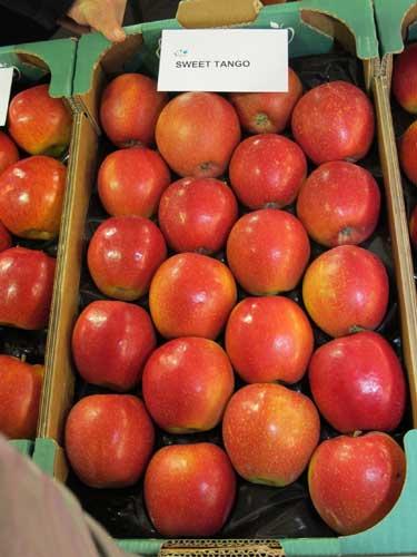 Po raz pierwszy europejscy sadownicy mogli tez obejrzeć owoce głośnej w Stanach Zjednoczonych nowości z Uniwersytetu w Minnesocie – odmiany Sweettango® (fot. 13; ‘Honeycrisp’ x ‘Minnewashta’). Jej jabłka mają się bardzo dobrze wybarwiać w chłodnym klimacie i charakteryzować twardym kruchym miąższem nawet po długim przechowywaniu.