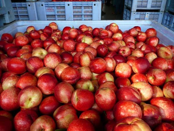 Codziennie do godziny 17.00, od początku czerwca do końca września producenci brzoskwiń i nektaryn przywożą owoce w skrzyniopaletach z tworzywa sztucznego. Każda organizacja producentów dysponuje skrzyniopaletami w innym kolorze (fot. 2). W tym samym czasie na rynku pojawiają się kupcy. Około godziny 18.00 wiadomo już jaki asortyment odmianowy wystawiony jest do sprzedaży oraz w jakich ilościach. Po negocjacji cen, kupcy dokonują zakupów, wieczorem transakcje są finalizowane i towar odjeżdża do właściciela. W transakcjach handlowych nie biorą udziału indywidualni sadownicy, ale prezes organizacji producenckiej, który osobiście potwierdza zgodność i jakość towaru oraz solidność organizacji.