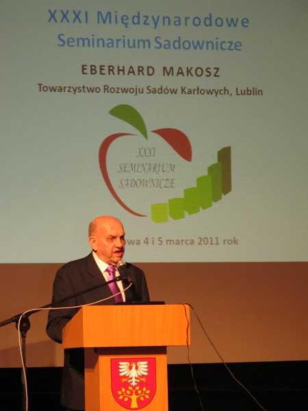 4 marca w Limanowej odbyło się XXI Międzynarodowe Seminarium Sadownicze, którego głównym organizatorem było Towarzystwo Rozwoju Sadów Karłowych. Tegoroczne spotkanie miało inny niż dotychczasowe program, gdyż jak powiedział prof. dr hab. Eberhard Makosz (fot. 1), „zamiast myśleć o tym jak zwiększać produkcję, pora odpowiedzieć na pytanie jak poprawić jakość owoców”. A musimy to zrobić szybko, bo mamy nadprodukcję zarówno owoców, jak i przetworów, a opłacalność produkcji sadowniczej spada. Widać to było zwłaszcza w sezonie 2008/09. Jak wygląda jakość krajowych jabłek (fot. 2) najlepiej można się przekonać podczas wizyty w jednym z wielu krajowych supermarketów.