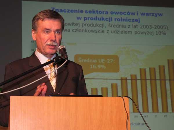 Podobnie jak prof. Makosz, także i ten prelegent uważa, ze w naszym kraju dominować będą ogólnie dostępne odmiany jabłoni (Šampion, ‘Gala’, ‘Ligol’ i ‘Golden Delicious’), a gruszki będą miały jedynie znaczenie marginalne. Tracić będzie na znaczeniu nasza przewaga wynikająca z taniej siły roboczej, a powierzchnia upraw i liczba gospodarstw ulegnie znacznej redukcji.