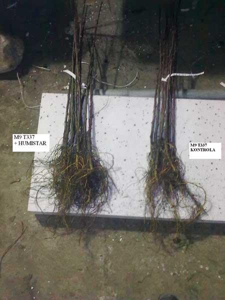 Związki próchniczne zawierają wiele tzw. substancji wzrostowych, np. witamin, auksyn, niektórych innych kwasów organicznych czy substancji o charakterze antybiotyków, które intensyfikują ważne procesy fizjologiczne roślin (gospodarkę wodną, oddychanie i fotosyntezę, m.in. przez uaktywnienie enzymów roślinnych) oraz działają jako organiczne katalizatory wielu procesów biologicznych. Korzenie roślin w glebie z dużą zawartością próchnicy mają optymalne warunki do wzrostu (fot. 1, 2), oddychania, pobierania wody i łatwy dostęp do składników pokarmowych. Próchnica i zawarte w niej kwasy stymulują rozwój włośników korzeniowych, ułatwiając sprawniejsze pobieranie składników pokarmowych z gleby (z większej powierzchni). Na stanowiskach wzbogaconych w kwasy humusowe stwierdza się zwiększenie produktywności drzew owocowych (plony są o 10-20% wyższe – fot. 3), poprawę jakości i wartości biologicznej plonu. Lepsza jest też kondycja drzew i ich odporność na stres. Ponadto substancje próchniczne mogą przeciwdziałać występowaniu niektórych chorób (fitosanitarne działanie jest spowodowane silnym mnożeniem się mikroorganizmów saprofitycznych, które są antagonistami fitopatogenów).