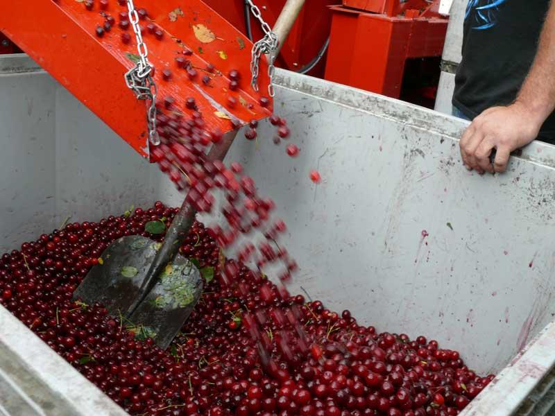 W Polsce produkcją urządzeń do zbioru wiśni zajmuje się kilka przedsiębiorstw. Do najważniejszych należy zaliczyć firmy: Weremczuk FMR (produkującą agregat otrząsająco-czyszczący Maja oraz kombajn Felix/Z), Jagoda JPS (z urządzeniem Gacek, fot. 7) oraz Sfamasz (z agregatem otrząsająco-odwiewającym OSA-1). Agregaty otrząsająco-oczyszczające przyczepiane wymagają ciągnika o mocy 20–25 kW, natomiast do sprawnej pracy kombajnem zaczepianym wymagany jest ciągnik o mocy około 45 kW, wyposażony w biegi pełzające. Do obsługi ww. maszyn jest potrzebne od 3 do 5 osób. Jak podają producenci, dokładność zbioru, niezależnie od rodzaju maszyny, jest wysoka i mieści się w zakresie 95–98%. Zbiór owoców można przeprowadzać, zależnie od wersji wyposażenia, do skrzynek lub skrzyniopalet. Ceny urządzeń do mechanicznego zbioru wiśni wahają się od kilkunastu tysięcy złotych za samą otrząsarkę do niemal trzystu tysięcy złotych za kombajn zaczepiany.