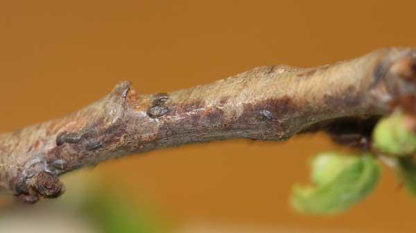 Problemy ze skutecznym ograniczaniem populacji przędziorków są coraz powszechniejsze. Tak było również w 2011 r. Wysoka temperatura i brak opadów w drugiej połowie lata przyczyniły się w wielu sadach do dużego wzrostu liczebności tych szkodników (fot. 1). Efektem tej sytuacji było złożenie przez przędziorki bardzo dużej liczby jaj zimowych. Przebieg pogody w zimie (przynajmniej do połowy stycznia) sprzyjał natomiast ich dobremu przetrwaniu. Dlatego w sadach, zwłaszcza tych, w których były duże problemy ze skuteczną redukcją przędziorków, konieczne są lustracje na obecność jaj zimowych (fot. 2). Jeśli podczas takiej kontroli stwierdzi się, że liczebność jaj przekroczy próg zagrożenia (zaobserwuje się grupy jaj o średnicy 0,5 cm lub większej) trzeba zaplanować zabieg zwalczający przed kwitnieniem. Do tego celu można z powodzeniem wykorzystać preparaty olejowe. Na roślinie działają one powierzchniowo, a na szkodniki kontaktowo. W stosunku do przędziorków niszczą jaja, ale skutecznie zwalczają też młode larwy. Nie zwalczają natomiast osobników dorosłych.