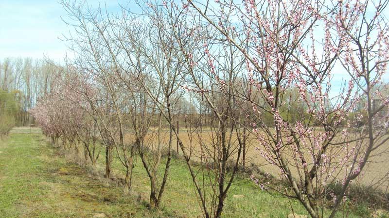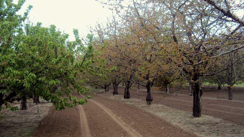 Ucierpiały wszystkie gatunki drzew owocowych: brzoskwinie (fot. 4), morele, śliwy, czereśnie (fot. 5), grusze i jabłonie, a także plantacje truskawek. W przypadku niektórych gatunków o najniższej wytrzymałości na mróz uszkodzone zostały w różnym stopniu wszystkie elementy składowe drzew: korzenie, pnie, pędy i pąki kwiatowe. Podczas kwietniowej oceny przezimowania drzew owocowych obserwowałam brązowe przebarwienia odcinków pędów i nasad pąków kwiatowych np. czereśni i grusz. Na niektórych drzewach, niezależnie od gatunku, widoczne były ponadto podłużne pęknięcia kory na pniu, które powstały najprawdopodobniej w styczniu lub na początku lutego. Wszystkie uszkodzenia pnia mogą prowadzić do powstania zrakowaceń dodatkowo osłabiających drzewa. Najmniej szkód jest na wiśniach – gatunku najbardziej wytrzymałym na mróz (dobrze zniosła zimę także antypka, na której jest szczepiona większość wiśni w rejonie).