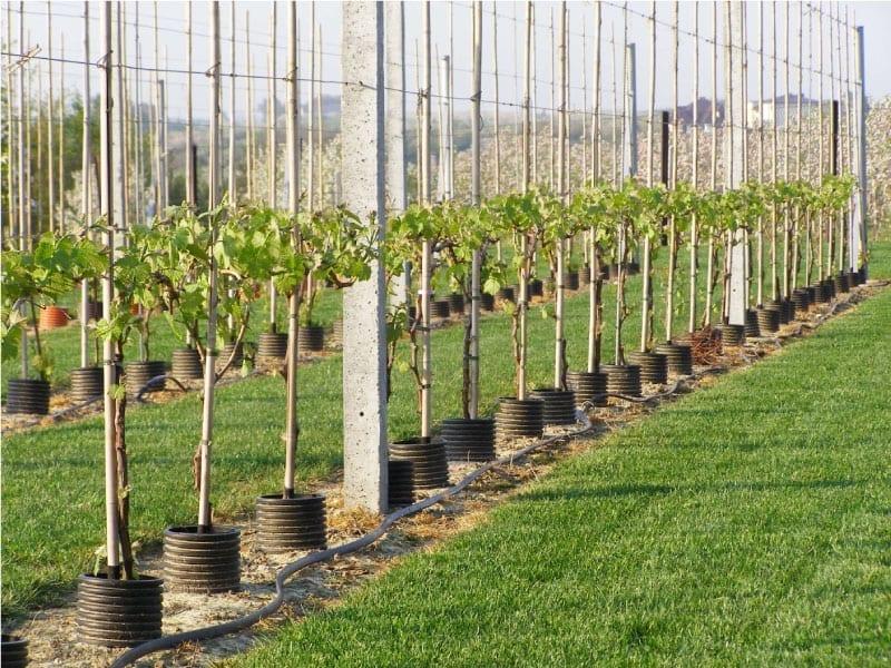 Istnieje kilka rodzajów sadzonek winorośli: szczepione, na własnych korzeniach, z tzw. gołym korzeniowe, doniczkowane, 3- lub 4-węzłowe (długie), 1- lub 2-węzłowe (krótkie) oraz jednopąkowe (tzw. mini sadzonki). Zdaniem dr M. Kapłan do zakładania winnicy najodpowiedniejsze są sadzonki długie, składające się z 3- lub 4-pąkowych odcinków łozy z 25–35-centymetrowym trzonem korzeniowym (fot. 4) oraz produkowane na własnych korzeniach (szczególnie przydatne dla początkujących), które po przemarznięciu krzewu nie zmuszają do likwidacji winnicy (po obcięciu przemrożonej części krzew odbija).