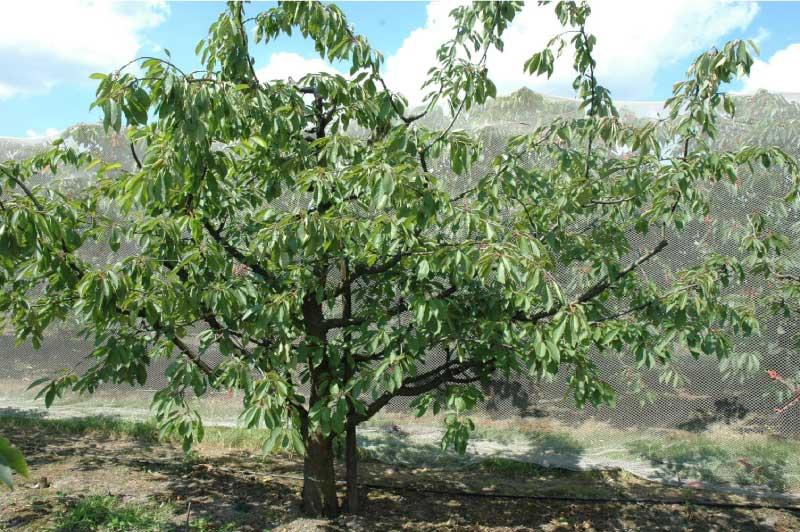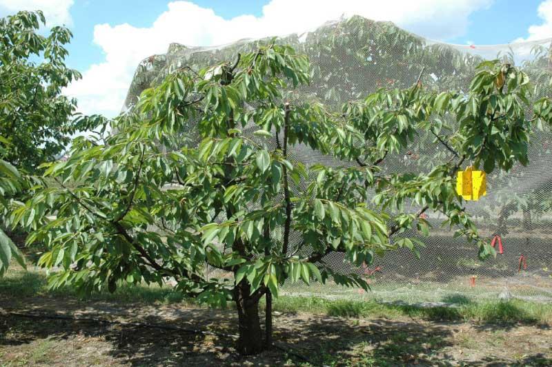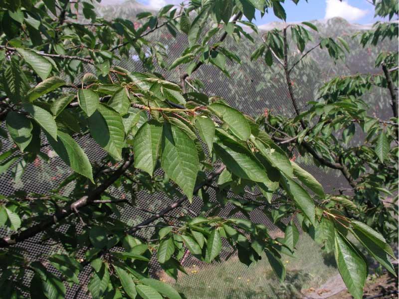 System korzeniowy czereśni pobiera i dostarcza do części nadziemnej wodę i rozpuszczone w niej mineralne składniki odżywcze/pokarmowe. Druga grupa substancji pokarmowych, czyli składniki organiczne, wytwarzana jest w liściach z wykorzystaniem energii światła słonecznego. Liście to najważniejsza „fabryka” asymilatów, miejsce w którym przebiega podstawowy proces życiowy roślin zielonych – fotosynteza. Wielkość całkowitej powierzchni liściowej drzewa, liczba, typ i kondycja liści, decydują o wysokości i jakości plonu. U czereśni najpierw tworzą się liście na krótkopędach – przeciętnie po upływie 25–35 dni od ruszenia wegetacji liście te są już wykształcone i do końca sezonu ich liczba i powierzchnia nie zmieniają się. Dłużej trwa rozwój liści na długopędach – przeciętnie zajmuje to około 60–70 dni. Wzrost długopędów na długość zostaje zatrzymany latem, z chwilą uformowania się pąka wierzchołkowego. Od tego momentu nie zwiększa się ani liczba liści, ani ich powierzchnia. Ogólna powierzchnia liści na drzewie również już się nie zmienia, chyba, że na skutek jakiejś klęski (szkodniki, choroby itp.), ulegnie ona zmniejszeniu. Liczba i powierzchnia pojedynczych liści rosnących na długopędzie są większe niż liści pochodzących z krótkopędu. Liście z długopędów wykazują też większą aktywność fotosyntetyczną i w produkcji asymilatów prześcigają liście z krótkopędów. Tym samym poziom odżywienia, wigor drzewa i jakość owoców zależy od tego, ile długopędów na nim się znajduje. Młode czereśnie, w okresie formowania zrębu korony, wydają przede wszystkim pędy długie. Z wiekiem liczba tych przyrostów zmniejsza się na korzyść krótkopędów (fot. 3) i drzewo wchodzi w okres owocowania. W przypadku czereśni rosnących na silnych podkładkach, wchodzenie w okres owocowania zajmuje wiele lat i w porównaniu do czereśni karłowych, przebiega bardzo łagodnie. Piętnastoletnie czereśnie na silnych podkładkach przestają mocno rosnąć, obficie owocują, ale jakość owoców jest ciągle bardzo dobra. Inaczej kształtuje się to u czereśni na podkładkach karłowych. Poszczególne fazy dochodzenia do pełni owocowania są krótsze a obfite owocowanie najczęściej związane jest z pogorszeniem się jakości owoców, które drobnieją. Ten stan rzeczy bierze się z zachwiania równowagi między wzrostem wegetatywnym (pędy, liście), a generatywnym (kwiaty i owoce), do którego dochodzi pomiędzy 4. i 6. rokiem życia drzew czereśni rosnących na podkładkach karłowych. W tym czasie, na drzewie krótkopędy zaczynają przeważać nad długopędami. Zmniejsza się nie tylko liczba długopędów, ale też ich długość. Tym samym w ogólnej powierzchni liściowej drzewa przeważają mniej aktywne liście z krótkopędów. Ilość asymilatów produkowanych przez liście na krótkopędach, wiosną i wczesnym latem, wystarcza do zawiązania i utrzymania owoców, ale jest już niewystarczająca dla ich wyrośnięcia. Na drzewie nie ma po prostu odpowiedniej liczby długopędów i powstających na nich dużych, bardzo aktywnych liści. Pamiętajmy, że na krótkopędach tworzenie się liści i ich przyrastanie kończy się około 25–35 dni po kwitnieniu. Produkcja asymilatów ustala się na stałym poziomie i już się nie zwiększa. Wzrost tej produkcji mogą zapewnić tylko rozwijające się i bardzo aktywne liście na długopędach. Ich rozwój i wysoka aktywność fotosyntetyczna trwają dłużej, do 60.–70. dnia po kwitnieniu. Jeżeli na drzewie zabraknie wystarczającej liczby długopędów, to ucierpi na tym przede wszystkim jakość owoców.