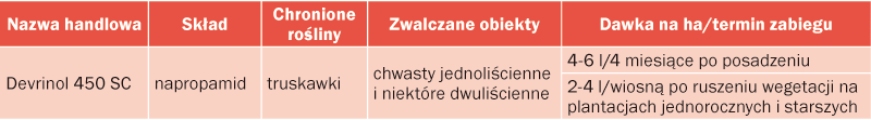 Dobór herbicydów powiększył się o Devrinol 450 SC, środek w formie stężonej zawiesiny (tab. 4).