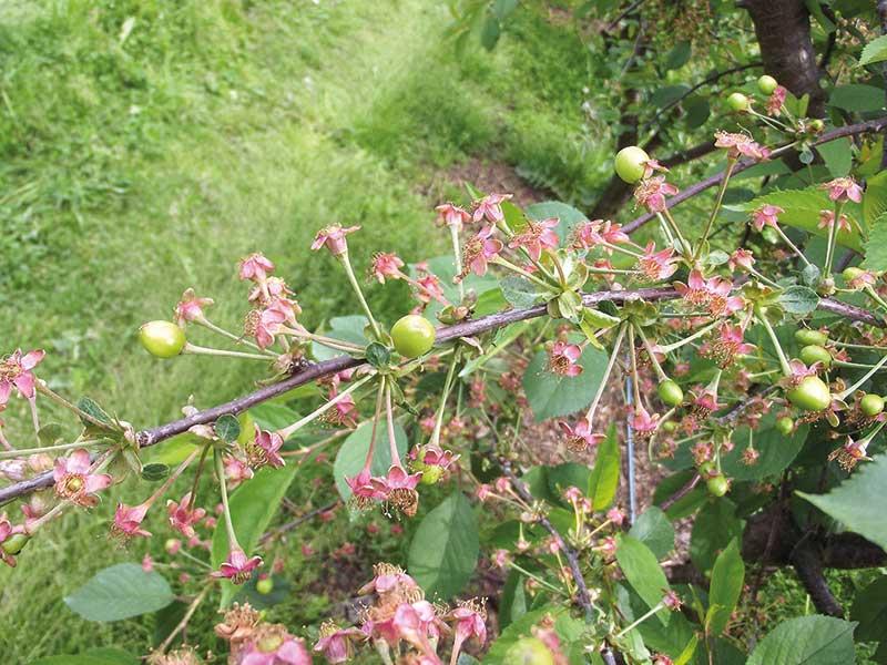 O ile wcześniejsze zabiegi (do kwitnienia) miały na celu stworzenie wysokiego potencjału w postaci dobrej jakości pąków kwiatowych i poprawienia ich zdolności do zapylenia oraz zapłodnienia, o tyle po kwitnieniu należy zadbać o to, aby rosnące zawiązki miały możliwie jak najlepsze warunki do wzrostu i intensywnych podziałów komórkowych. Czas od kwitnienia do opadu czerwcowego jest dość krótki, ale chyba najważniejszy dla budowy potencjału drzew pod względem wysokości i jakości plonu. W tym czasie dochodzi do ogromnego zużycia i, wydawałoby się, marnotrawienia energii. Rośliny zużywają jej wiele na zakwitnięcie, ale duża część kwiatów (niezapylonych, niezapłodnionych) niemal natychmiast opada, a następnie zrzucane są wszystkie te, które zostały zapłodnione w niedostatecznym stopniu (fot. 1. W ubiegłym sezonie było to dość powszechnym zjawiskiem w sadach wiśniowych, czereśniowych i jabłoniowych (‘Ligol’) w okolicach Grójca i Sandomierza, a wynikało z krótkiego kwitnienia i panującej w tym czasie bardzo wysokiej temperatury (fot. 2). W młodych zawiązkach dochodzi do intensywnych podziałów komórkowych, z czym również wiąże się ogromne zapotrzebowanie na energię. W silnej konkurencji o składniki pokarmowe wygrywają większe i silniejsze zawiązki, a pozostałe muszą odpaść (fot. 3). Ta niesamowita rozrzutność ma w przyrodzie uzasadnienie: szanse na przetrwanie gatunku rosną, gdy wydaje on zdrowe i silne nasiona, a takie łatwiej uzyskać z dużych owoców. Od początku więc odrzucane są przez roślinę słabsze elementy (kwiaty, zawiązki), aż przychodzi czas opadu świętojańskiego i następuje „ostateczna” selekcja. Po opadzie czerwcowym roślina sama z siebie już nie zrzuca owoców (jeśli chcemy je dodatkowo przerzedzić – musimy to zrobić ręcznie), jednak konkurencja o składniki pokarmowe ciągle trwa. Walczą o nie zarówno zawiązki i pędy, jak i tworzące się na następny sezon pąki kwiatowe.