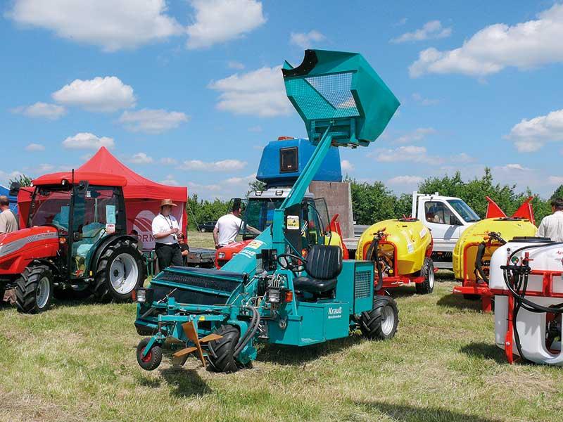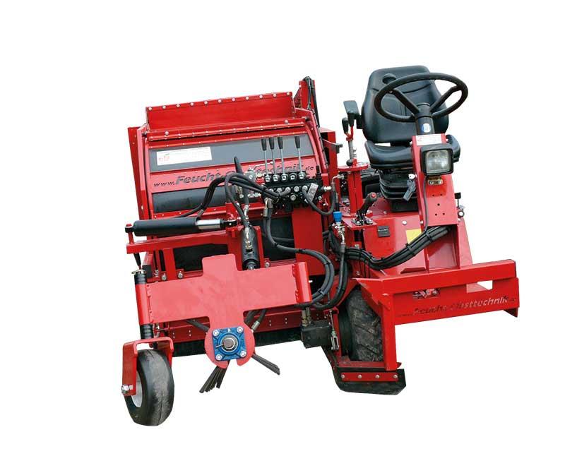 Krauß model SF 1000 A. Inną propozycję do zbioru jabłek spod drzew stanowi samobieżna maszyna Krauß model SF 1000 A, którą ma w ofercie firma Agro-Tur z Opola Lubelskiego (fot. 6). Może być ona napędzana silnikiem benzynowym lub diesla, a wydajność zbioru jabłek wynosi 1,5–5,0 t/godz. Maszyna ta wyposażona jest w wygarniacz jabłek oraz dwa przeciwbieżne walce czyszczące, które umożliwiają zbiór owoców z podłoża w każdych warunkach atmosferycznych. Zbiornik o pojemności 400 kg i wysokości podnoszenia do 250 cm pozwala z kolei na szybkie i skuteczne ładowanie zebranych owoców nawet do samochodu ciężarowego.