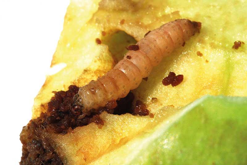 Biologia szkodnika. Zimują dorosłe gąsienice (V stadium) w zakamarkach kory, w skrzynkach i paletach używanych do zbioru i przechowywania owoców. Gąsienice przepoczwarczają się wiosną (w kwietniu). Lot motyli rozpoczyna się w maju, najczęściej w drugiej dekadzie. Okres trwania lotu wynosi ok. 3 miesiące, do połowy sierpnia. W drugim, trzecim dniu po wylocie zapłodnione samice zaczynają składanie jaj, których rozwój w dobrych warunkach termicznych trwa 8–10 dni. Zarówno lot motyli, jak i intensywne składanie jaj odbywa się w temperaturze powyżej 15°C (fot. 2). W początkowej fazie lotu motyli (w maju), kiedy warunki pogodowe nie są stabilne, okres rozwoju jaj może się znacznie wydłużyć, nawet do ponad 3 tygodni. Gąsienice krótko po wylęgu wgryzają się do wnętrza owoców (fot. 3). Otwory wgryzów powodowane przez świeżo wylęgłe gąsienice są maleńkie, otoczone na obrzeżach trocinami. Gąsienica drąży głęboki korytarz biegnący do gniazda nasiennego, wypełniając go gruzełkowatymi odchodami. W niektórych owocach oprócz otworu, przez który wgryza się gąsienica, widać znacznie większy otwór wyjściowy (fot. 4). Porażone jabłka ze zniszczonymi nasionami wcześniej dojrzewają i opadają. Okres rozwoju gąsienic trwa około 23 dni. Po zakończeniu żerowania gąsienice opuszczają owoc. Część z nich tworzy oprzędy i zapada w diapauzę. Z innych po przepoczwarczeniu wylatują motyle drugiego pokolenia (druga połowa lipca – pierwsza połowa sierpnia). Jego szkodliwość też może być bardzo duża. Często bowiem gąsienica zanim wgryzie się do wnętrza owocu kaleczy 2 lub 3 inne przylegające jabłka.