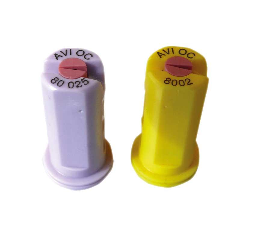 Do ochrony upraw sadowniczych można również stosować rozpylacze AVI 80 (fot. 3) – są to eżektorowe rozpylacze płaskostrumieniowe o kącie 80º, o zasięgu do 8 m. Nowością są też eżektorowe rozpylacze płaskostrumieniowe CVI 80, również o bardzo niskiej podatności na znoszenie cieczy roboczej. Zalecane ciśnienie cieczy roboczej to 10–20 barów. Ważną cechą rozpylaczy Albuz jest możliwość ich demontażu bez użycia dodatkowych narzędzi i łatwość czyszczenia.